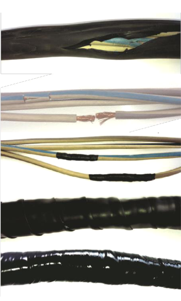 - Место ремонта имеет незначительный перепад диаметра относительно оболочки кабеля