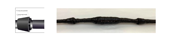 2. Корпус муфты МСХ-Е с предустановленными трубками холодной усадки;